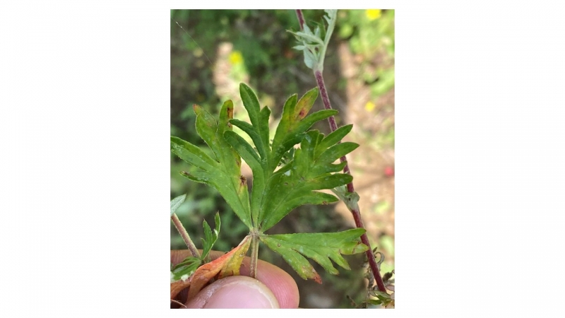 Foglie: le inferiori lungamente picciolate; le superiori sessili, La lamina è palmato digitata divisa in 3-5 segmenti stretti, presenza di una fitta tomentosità nella pagina inferiore