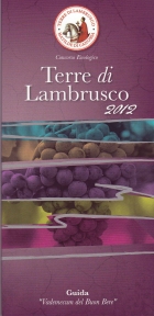 Terza edizione per l’ormai attesa guida dei vini “Terre di Lambrusco 2012” figlia del concorso enologico “Matilde di Canossa” che anche quest’anno ha avuto luogo a Reggio Emilia, per volontà della Camera di Commercio. La guida, che quest’anno sfoggia una rinnovata ed accattivante copertina, vuole essere uno degli strumenti a disposizione dei consumatori, sia nazionali che internazionali, in grado di far conoscere le qualità di questo grandissimo vino. Traduzione in inglese, francese e tedesco.