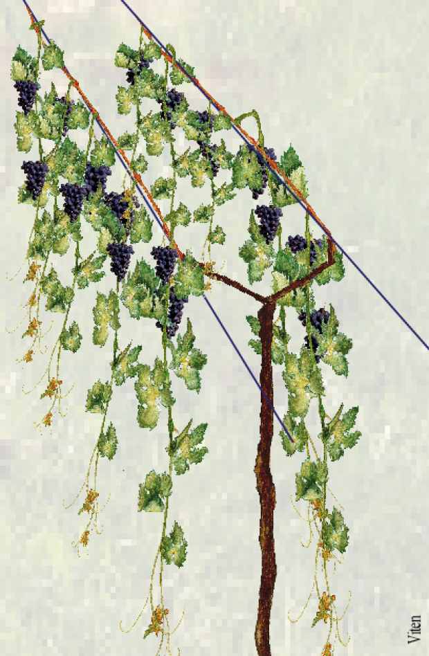 Forma di origini statunitensi creata appositamente per la meccanizzazione. Le strutture di sostegno devono essere particolarmente robuste e le testate perfettamente ancorate. I due fili portanti sono sorretti da due braccetti mobili che vanno a formare le due cortine.