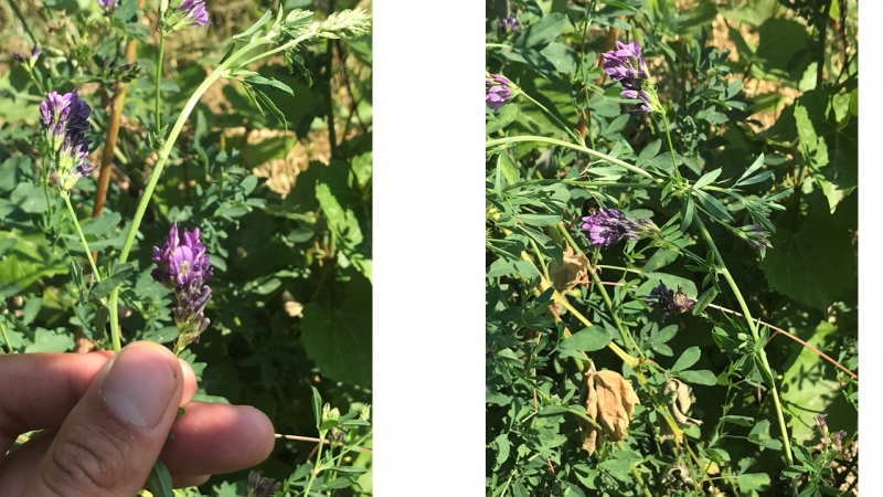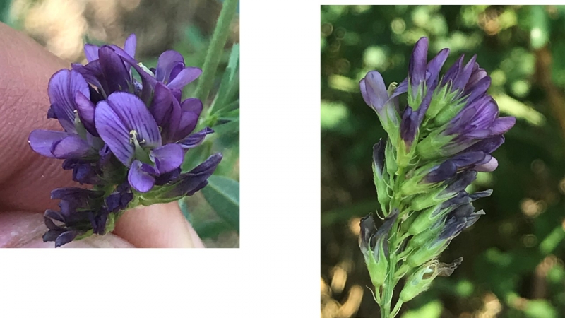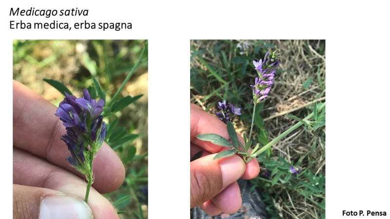 Angiosperma: dicotiledone Fam. Leguminosae Specie:M.sativa Forma biologica: emicriptofita scaposa (Hr) Ciclo di vita: perenne Altezza: 30-80 cm Apparato radicale: secondarie da rizoma Fusto: eretto, ramificato Foglie: stipole lineari, alterne, trifogliate, con margine denticolato e apice tronco-mucronato Fiore: racemo denso, corolla papilionata di colore azzurro-violetto, il quinto petalo detto vessillo ha una nervatura più scura Frutto: legume spiralato Antesi: aprile-agosto Habitat: incolti, luoghi erbosi, prati aridi, coltivi