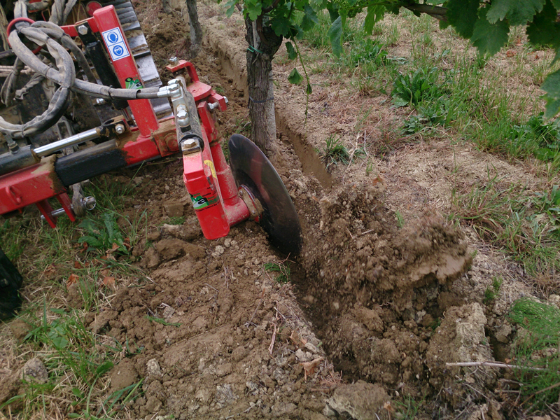 Le lavorazioni nel terreno del nuovo vigneto sono sicuramente utili allo scopo di controllare le infestanti e per stimolare la crescita delle giovani viti. Gli attrezzi impiegabili sono diversi, tutti con vantaggi e svantaggi che vanno attentamente ponderati per ottimizzare i risultati. Per i terreni soggetti all’azione erosiva delle acque è necessario opporre un freno a tali danni. Risultati positivi si ottengono con la pacciamatura lungo la fila e lasciando inerbire almeno una striscia centrale dell’interfila, è però indispensabile contenere le infestanti con frequenti trinciature, allo scopo di ridurre al minimo il consumo di acqua e di sostanze minerali. Le malerbe presenti nell’interfila possono essere controllate anche con diserbanti ad assorbimento fogliare mentre sono generalmente sconsigliabili i diserbanti residuali.