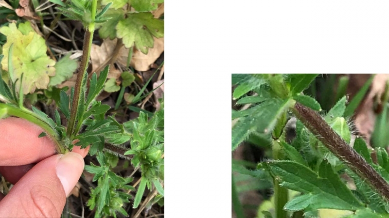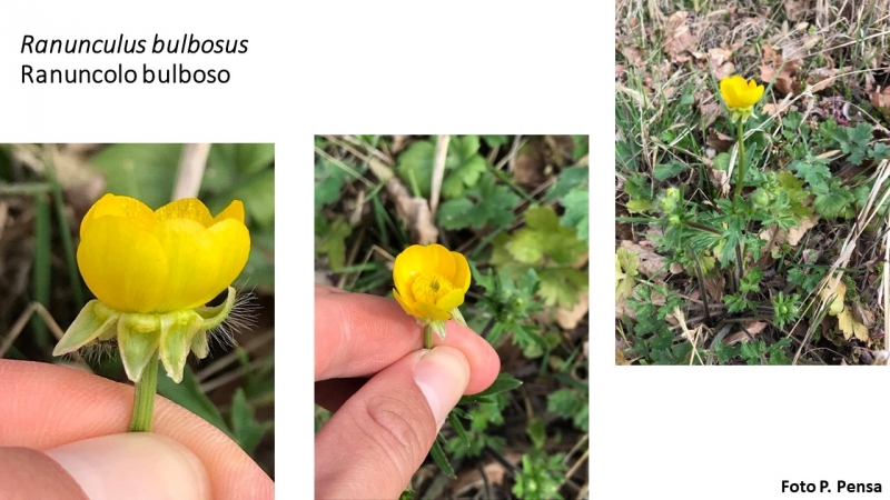 Angiosperma: dicotiledoni Fam. Ranunculaceae Specie: R. bulbosus Forma biologica: emicriptofita scaposa (Hr) Ciclo di vita: poliennale-perenne Altezza: 15-60 cm Apparato radicale: radice bulbiforme Fusto: eretto, ramificato, e ricoperto di peli patenti Foglie: foglie basali con lamina a contorno triangolare divisa in 3 segmenti, le cauline sessili ridotte fino a lacinie Fiore: peduncoli solcati, gialli, calice con sepali ovato lanceolati deflessi, corolla a 5 petali di forma ovata Frutto: aggregato di acheni Antesi: marzo-settembre Habitat: prati aridi, luoghi incolti, infestante delle colture erbacee