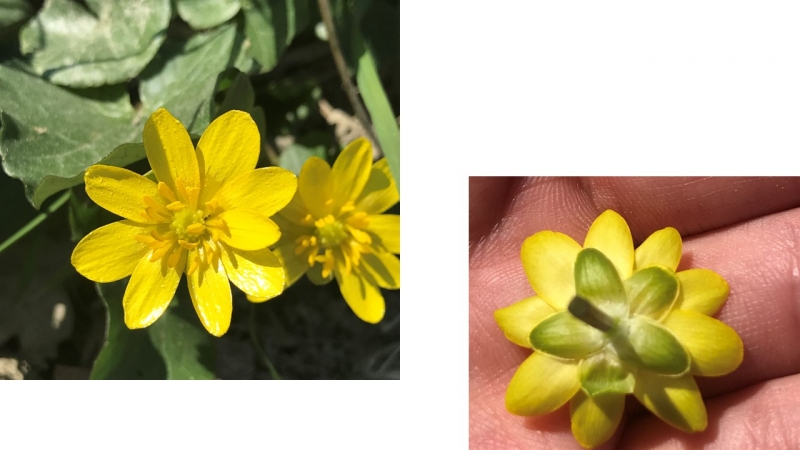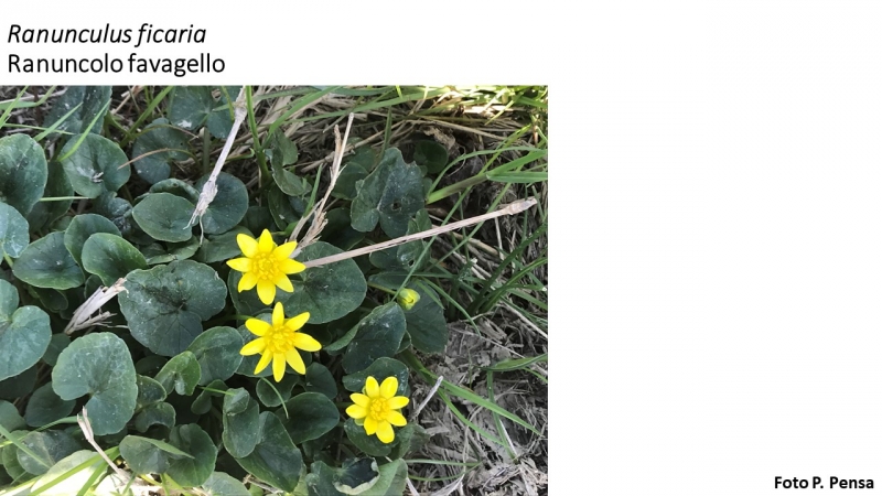 Angiosperma: dicotiledone Fam.Ranunculaceae Specie:R. ficaria Forma biologica: geofita bulbosa (G) Ciclo di vita: poliennale-perenne Altezza: 5-30 cm Apparato radicale: piccoli tuberi-bulbi sotterranei fusiformi Fusto: eretto, internamente cavo Foglie: basali, lucide picciolate con margine crenato e apice smussato, foglie cauline 1 o assenti più piccole Fiore: solitari su un lungo peduncolo, corolla di 7-8 petali gialli, calice 3-4 sepali bianco-verdastri Frutto: achenio Antesi: gennaio-maggio Habitat: prati e campi umidi, lungo i fossi, boschi di latifoglie