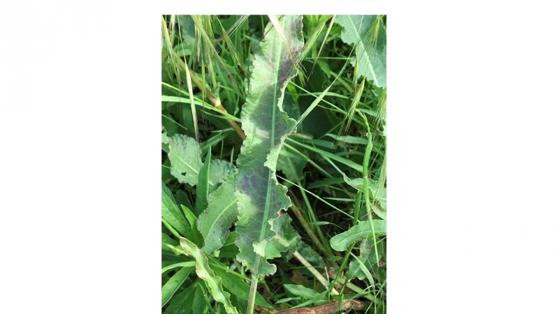 Foglie: le basali sono picciolate e amplessicaule con lamina oblunga lanceolata e margine crespo; quelle superiori sono alterne, ovali e appuntite