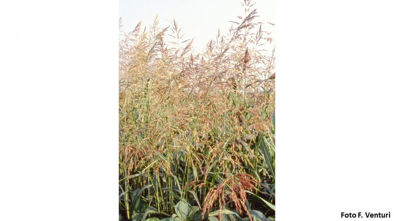 Fam. Graminaceae Specie:S. halepense Forma biologica: geofita rizomatosa Ciclo di vita: poliennale-perenne Altezza: 30-180 cm Apparato radicale: radici secondarie a partire dal rizoma Culmo: ipogeo formato da un rizoma strisciante; epigeo eretto, robusto e cilindrico Foglie: lineari aventi un bordo tagliete, la ligula presenta un ciuffo di peli bianchi Fiore: pannocchia ampia e patente formata da spighette uniflore ternate Frutto: cariosside Antesi: giugno-ottobre Habitat: vigneti, infestante del mais, incolti, bordi delle strade