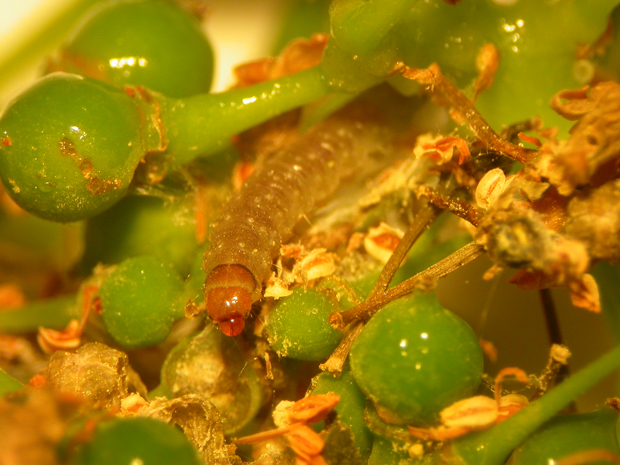 2° generazione: Generazione carpofaga, le uova vengono rilasciate sugli acini verdi (durante la fase di pre-chiusura grappolo). Le larve che si sviluppano da esse penetrano all’interno dell’acino dove svolgono il loro ciclo. Gli adulti compaiono nella fase di invaiatura a fine luglio-inizio agosto;