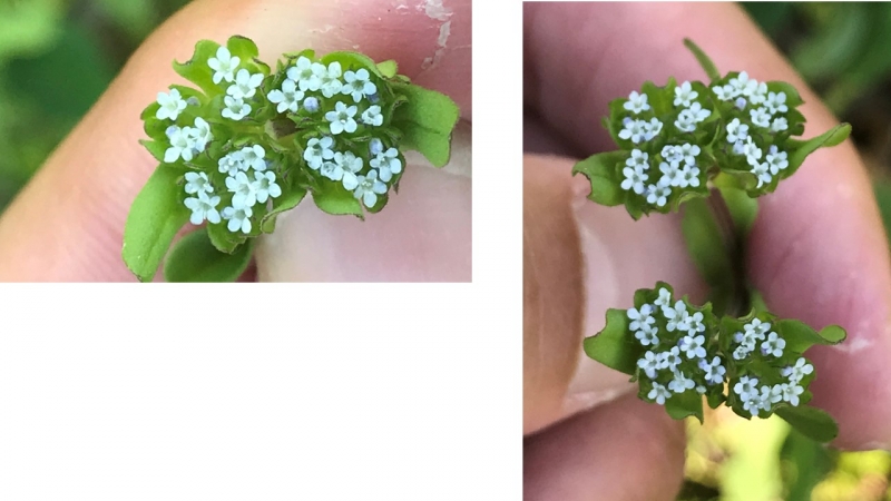 Fiore: infiorescenze in cime contratte, fiori pentameri, petali bianchi-azzurri